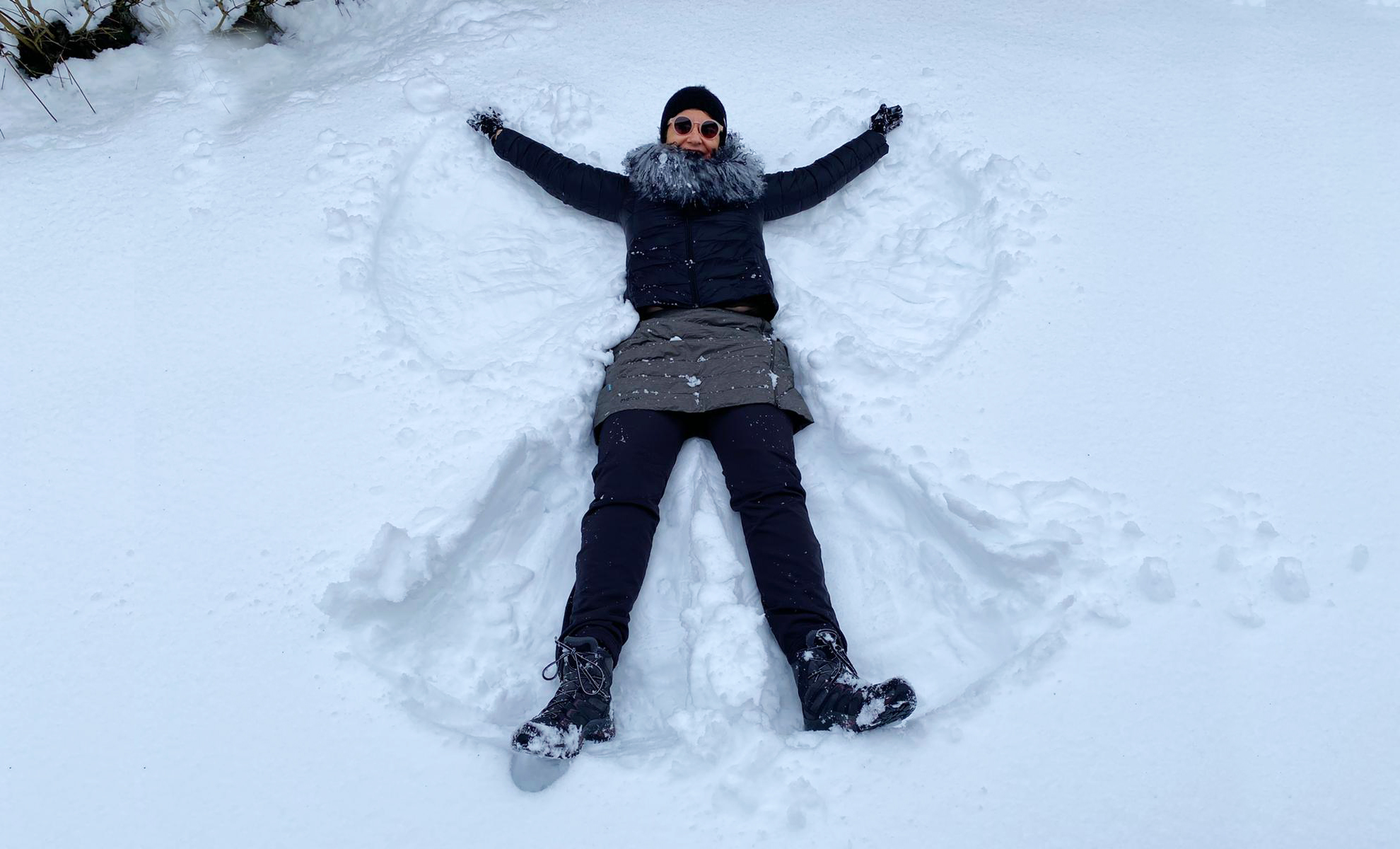 Schlitten fahren, Schneemann bauen, Winterwaldspaziergänge – all das hat mich an meine Kindheit erinnert, wo man mit Armen und Beinen Engel in den frisch gefallenen Schnee malte, bis man völlig unterkühlt zu Hause angekommen mit Kakao und Waffeln verwöhnt wurde.