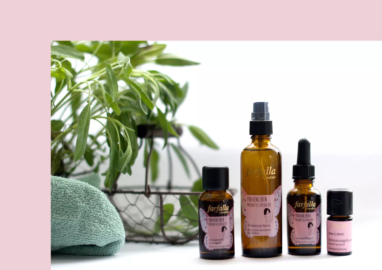 farfalla hat nämlich genau für alle unsere Befindlichkeiten die ätherische Linie „Frauenleben“ kreiert. Sie besteht aus vier Produkten, deren Basis das ätherische Öl Muskatellersalbei ist. Muskatellersalbei wirkt ausgleichend auf die Psyche und den Hormonhaushalt, schenkt uns mehr Gelassenheit und kann damit die Beschwerden der Wechseljahre lindern.